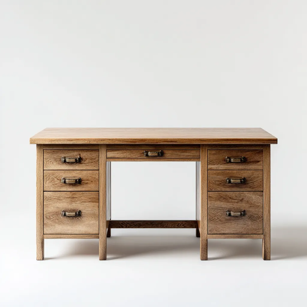 Ce bureau en bois offre une surface de travail spacieuse et fonctionnelle, adaptée à un espace de travail à domicile ou à un bureau professionnel. Son design classique et équilibré s'intègre facilement dans différents styles d'intérieur.