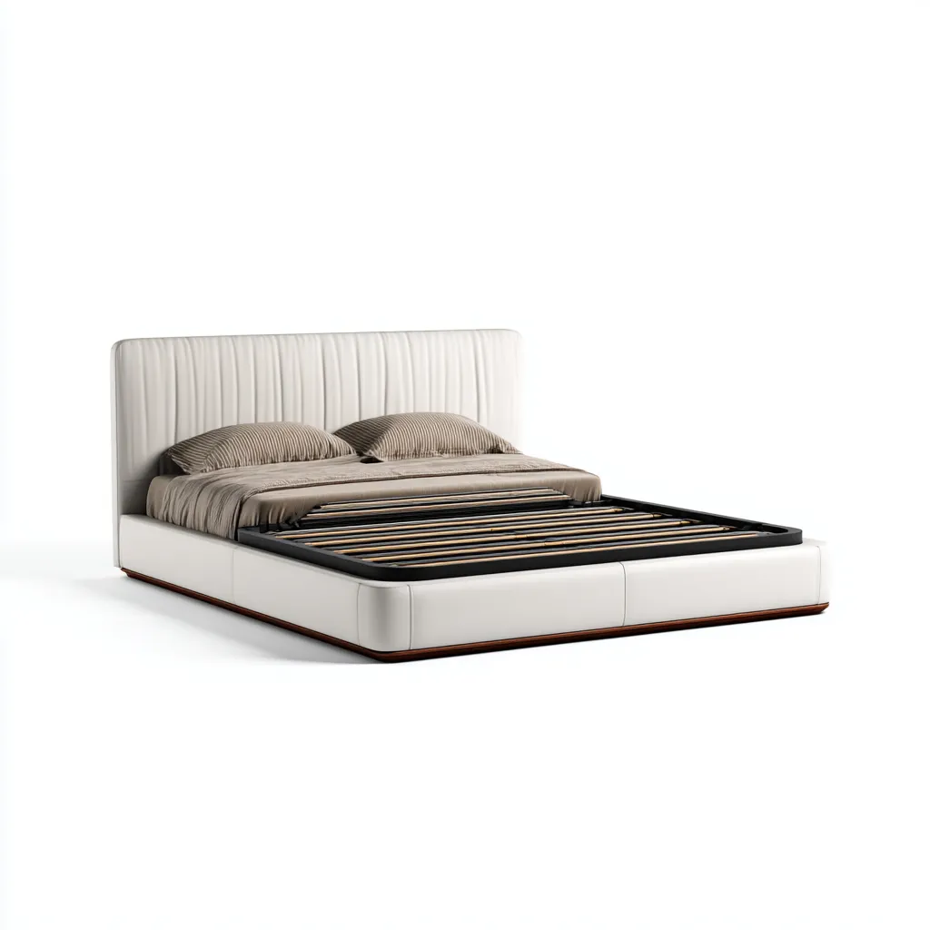 Le format double permet un couchage confortable pour deux personnes. La base du lit est conçue pour accueillir un sommier à lattes, offrant un bon maintien du matelas et une utilisation adaptée au quotidien.
